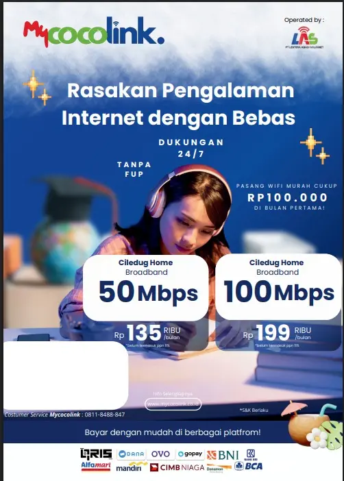 PT. Lentera Abadi Solusinet (Mycocolink) merupakan perusahaan yang bergerak di bidang Networking Internet Service Provider (ISP), saat ini kami sedang membutuhkan Sales ( Pemasaran Internet Rumah ).
